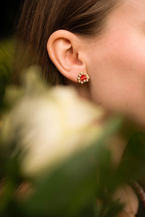 Con motivo de la celebración de San Valentín, la firma ha presentado una colección especial integrada por 4 piezas, un anillo en tres colores diferentes, dos diseños de pendientes, y una pulsera. El cristal y las perlas son los dos elementos elegidos para dar forma a esta colección además del lacado con colores vivos tan característicos de la marca.