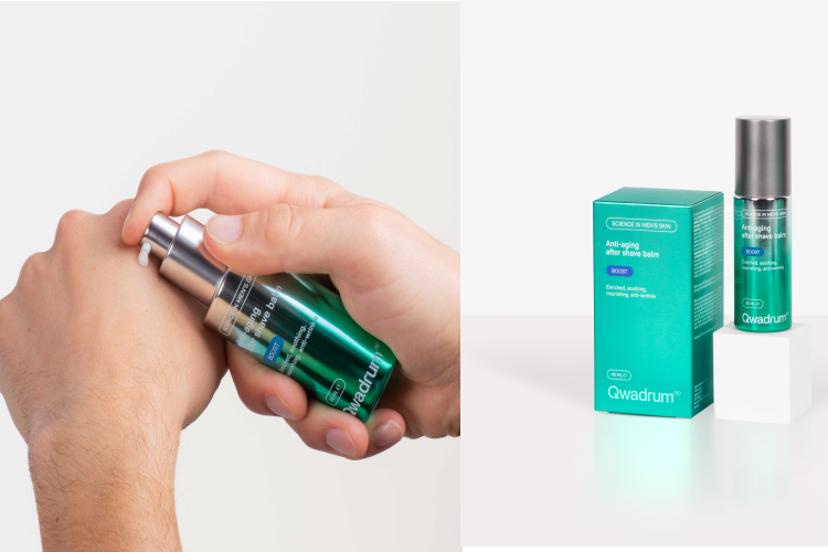 En Qwadrum a la hora de crear su propio after shave querían ir un paso más allá. No solo querían que la piel quedara reparada tras el afeitado, sino que también el producto actuara contra el envejecimiento, y con una formulación de muy rápida absorción.