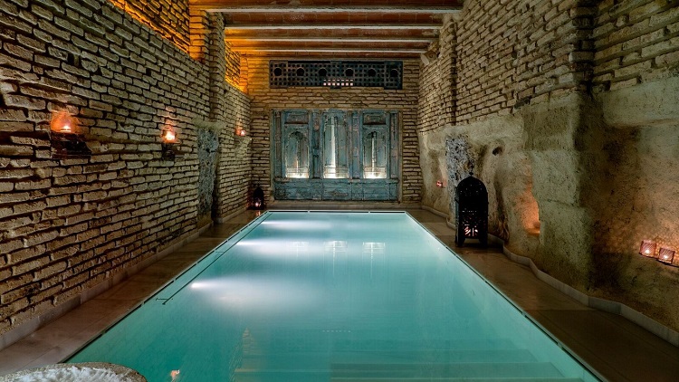 El silencio, la tenue luz de decenas de velas, el aroma a azahar y el aterciopelado susurro de melodías relajantes que incluso se pueden escuchar debajo del agua, son también elementos clave de la experiencia . Como también lo son los baños que se reparten entre distintas estancias a diferentes temperaturas.