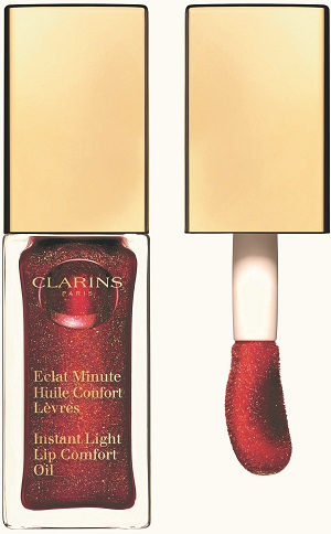 Para los labios, destellos rojos con Lip Confort Oil 09 red Berry glam, uno de los tonos preferidos que, esta temporada, tiene brillo extra. Los aceites botánicos nutrientes suavizan y brindan confort a los labios con extrema ligereza. ¡Y la guinda del pastel! Una fragancia irresistible y un delicioso sabor a frutos rojos.