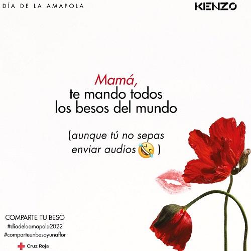 Ese día, por cada foto publicada en Redes Sociales con los hashtags #DiadelaAmapola2022 y #ComparteUnBesoyUnaFlor, Kenzo Parfums donará 5€ a Cruz Roja Española para destinarlo a su proyecto de ayuda a la Salud Mental «Cruz Roja Te Escucha”.