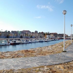 El caserío se divide entre la parte alta y la parte de la playa, donde está el puerto pesquero y también las playas de la Concha, la Ribera y la Riberuca. Al otro lado de una pequeña península (punta del Dichoso) quedan la playa de los Locos y la ensenada de la Tablía. Aquí estuvo situado Portus Blendium en época de los romanos, posiblemente en la zona de la ribera de la ría, en punto no distante de lo que es el puerto actual. En el pasado, esta localidad se llamó San Martín de la Arena.