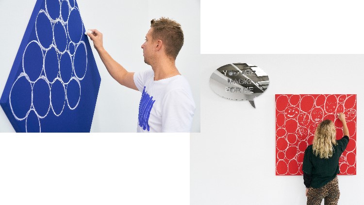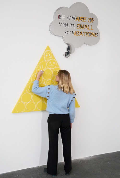 En este viaje para encontrarnos con nosotros mismos, con el mundo y con los demás, el artista nos guía con mensajes inscritos en bocadillos de espejo: «Right here, right now»; «You change to change»; «Be aware of your small sensations». Frases que hacen eco de nuestras propias preguntas y nos animan a expresarlas.