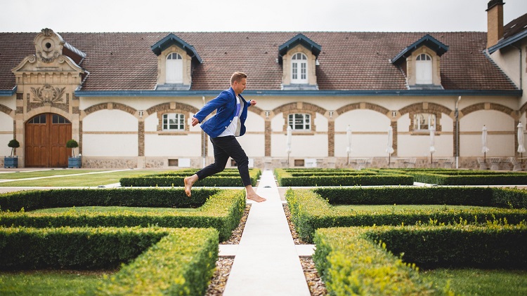 Para Jeppe Hein, hacer y degustar champagne, desde el momento en que se cosechan las uvas hasta que el vino brilla en la boca, es una experiencia sensorial total. Interpreta la esencia de esto en una instalación de arte para ser experimentada Right Here, Right Now una instalación participativa que apela a los cinco sentidos y convoca a los cuatro elementos (tierra, agua, aire y fuego) que son esenciales para la elaboración del champagne.