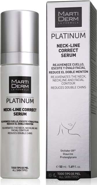 El laboratorio MartiDerm, teniendo en cuenta que esta zona es una de las grandes olvidadas en la rutina diaria de belleza, ha creado Neck Line Correct Serum, un producto que se suma a la línea Platinum, que lucha contra el envejecimiento consiguiendo dar una respuesta adaptada a esta delicada zona.