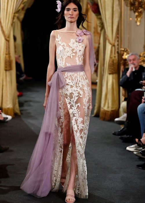 Destacan las trasparencias y semitransparencias, y la presencia de flores y plumas realizadas de manera artesanal.