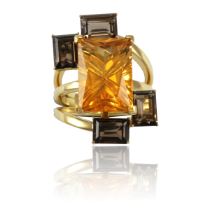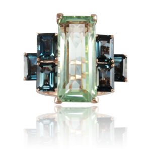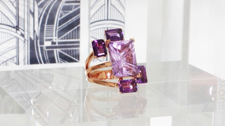 Los anillos que forman la colección, montados en oro amarillo o rosa, destacan por los colores de las piedras utilizadas, donde los cuarzos, amatistas o topacios dan lugar a creaciones únicas.