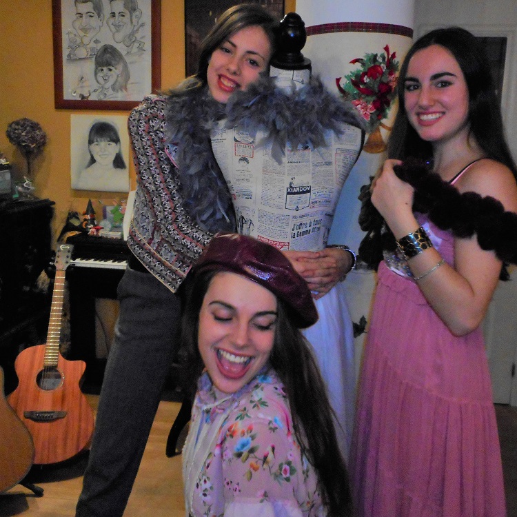 Ale, que llevaba un vestido de aire romántico, de Armario Lulú, e Isa, que eligió una  festiva cazadora con brillis , tocaban la guitarra y se lo pasaban bomba. María, que optó por un vaporoso vestido con adornos de piedras de colores, decidió probar suerte con el piano. ¡Música, maestro!