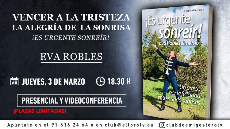 Nuestra compañera y amiga, Eva Robles Jiménez, presenta su obra «¡Es urgente sonreír! Un paseo por la felicidad entrenando sonrisas”
