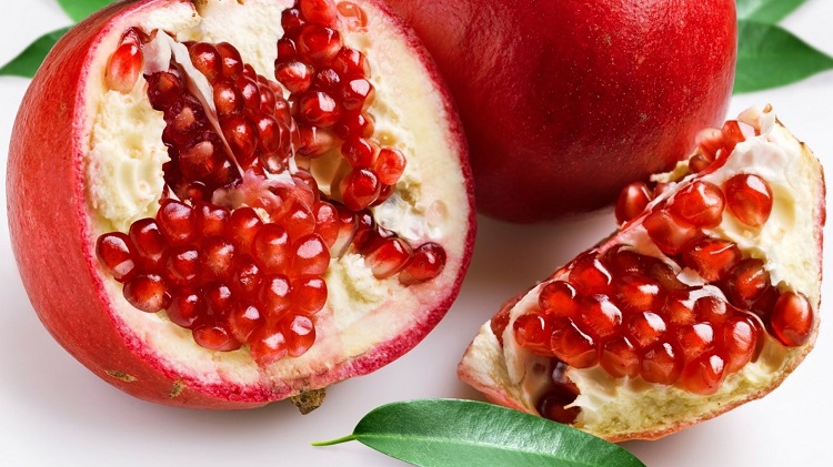 • Granada: La granada ayuda a frenar el proceso de envejecimiento y a mantener la piel sana. Por su poder antioxidante, favorece la circulación sanguínea, reduce la presión y combate los radicales libres. Propiedad diurética, que favorece la eliminación de agua y sales. Tiene alto contenido de vitamina C, además de vitamina B5 (ácido pantoténico), fenoles naturales, potasio, vitamina A, vitamina E y ácido fólico.