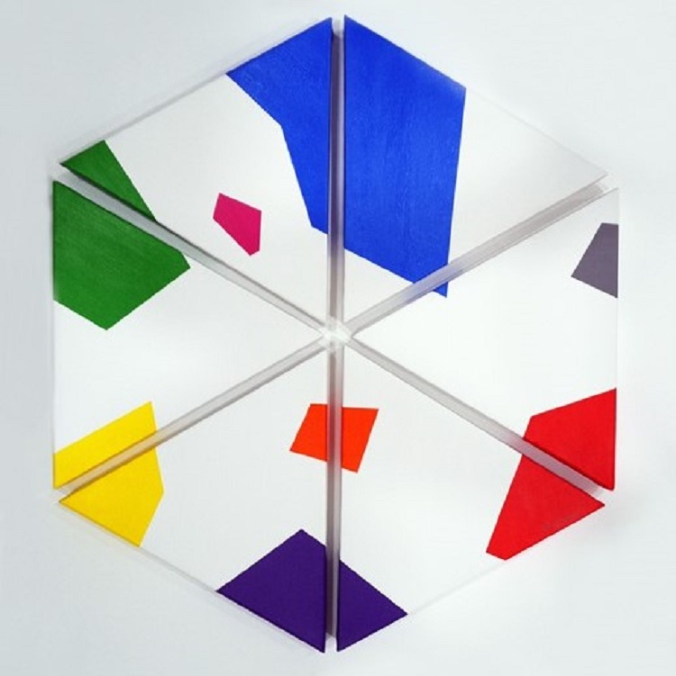 Polígonos Irregulares es un conjunto de cuadros (redondos, cuadrados, triangulares, hexagonales…) llenos de color y de fuerza, perfectos para esta temporada.