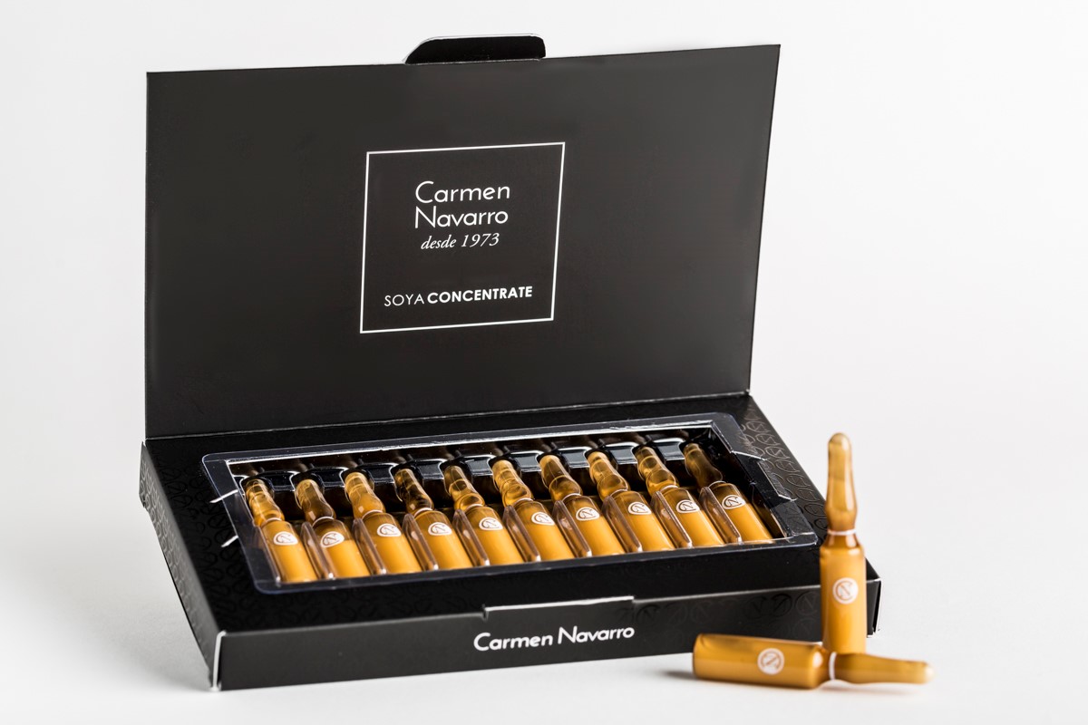 - Ampollas de soja Carmen Navarro, “lifting no médico”. Aplicar antes del evento para realzar el efecto flash buscado.