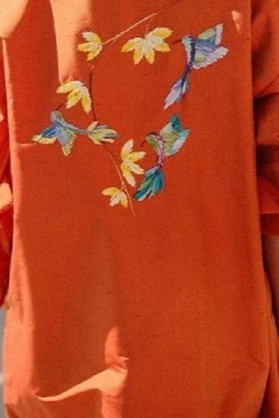 Sus siluetas amplias, sus mangas pronunciadas y sus colores intensos dotan a la pieza de un movimiento ligero y una textura que se siente casi escultórica.