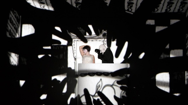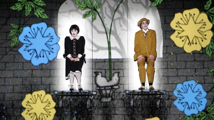 La ausencia de un decorado tradicional, con una ‘escenografía virtual’ reducida a la presencia de una pantalla en el escenario, obliga a los cantantes a actuar con una enorme concentración, talento actoral y movimientos sincronizados, que deben tener la frescura del gag y una precisión de relojería en su coordinación con la proyección de los dibujos.