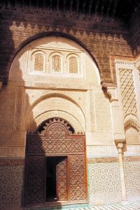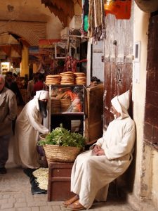 Pero aunque haya muchos y muy bellos monumentos en la medina, su auténtica alma se encuentra en los callejones, a veces de solo 60 centímetros de ancho, y los sucesivos barrios de los artesanos: el barrio de los afiladores, el de los zapateros, el de los alfareros, el de los tintoreros, entre otros muchos. Aquí hay que perderse en ese mundo de sensualidad que es Fez, una ciudad para vivir, para oler, para imaginar… Es un mundo casi medieval en el que sobreviven las viejas profesiones medievales: orfebres, caldereros, hojalateros, tejedores, tintoreros, talabarderos y curtidores organizados en gremios, como hace siglos.