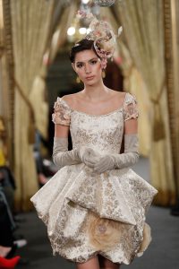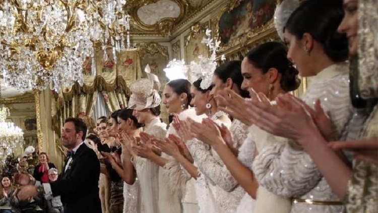 Los tejidos, elegidos con intencionalidad, seda natural, dupión, organza, seda salvaje y gazar, rememoran París, Venecia se vislumbra en los brocados, en los damascos y las pedrerías y los bordados en cristal son de inspiración oriental y recuerdan el destino final del viaje, Estambul.
