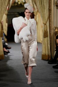 Siluetas marcadamente femeninas se dibujan sobre trajes sastre, vestidos con cuerpos entallados de compleja construcción, cortes al biés, emballenados, faldas y cuerpos drapeados o nudos, líneas A, abrigos oversize y capas con volúmenes amplios y envolventes.