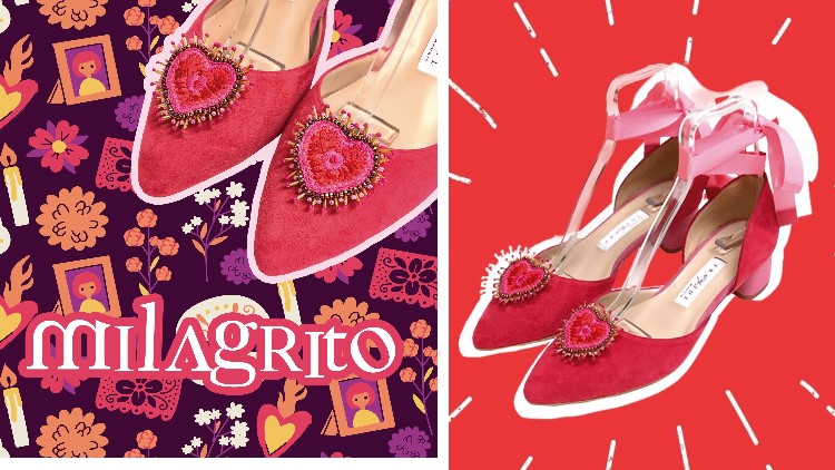 - MILAGRITO: Este modelo está inspirado en los “milagritos”; los corazones artesanales mexicanos. Son pequeñas figuras que se utilizan como ofrendas para pedir un milagro o agradecer por algo y representan la devoción y la fuerza del pueblo mexicano. Los milagritos que acompañan este modelo fueron elaborados y bordados a mano por artesanas oaxaqueñas bajo la marca de Gaby Vilchiz (@gabyvilchiz).
