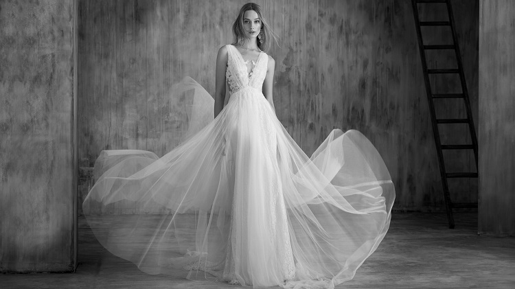 Los vestidos son los grandes protagonistas de la colección en sus diferentes largos tanto en novia como en fiesta, donde encontraremos diversos tejidos como brocados, Jacquard y multitud de sedas enriquecidas con bordados de pedrería que las hacen únicas.