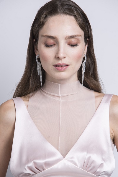 Tejidos: popelines, muselinas vaporosas, croché bordado con cristales y crepés de seda satinados.