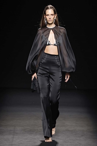 • Día: minivestidos estructurados, blazers con cintura marcada y pantalones de corte impecable.