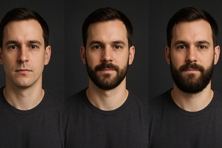 Lo que funciona es añadir volumen en los laterales para equilibrar la forma. Una barba media o estilo “chevron” acompañada de bigote puede darte el balance perfecto.