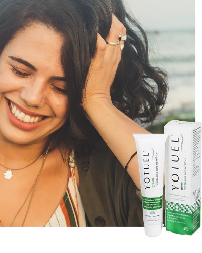 Yotuel microbiome presenta una fórmula con la composición patentada y registrada como Saliactive® Technology, con prebióticos, antiinflamatorios y antioxidantes naturales de origen vegetal que actúan modulando la microbiota oral hacia elequilibrio.