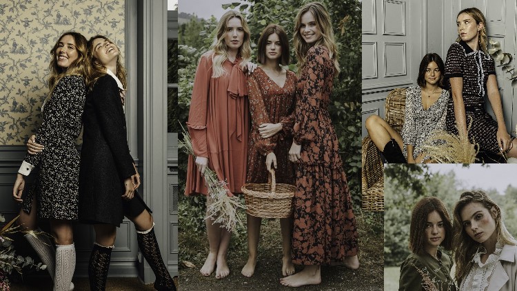 El equipo de diseño, en su atelier de Madrid, ha trabajado nuevas paletas de color inspiradas en los colores del campo, mostazas, nudes, verdes y granates, siempre mezclados con tonos pastel como el azul y el rosa característicos de la firma. Además de nuevos estampados de flores, cuadros, tweeds y denim.
