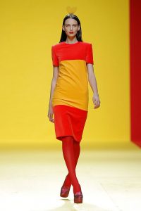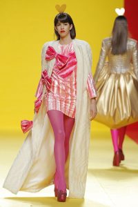 AGATHA RUIZ DE LA PRADA. Siempre colorida y alegre, inunda la pasarela de luz y buen rollito. Utilizando la bandera rojigualda como pasarela, sus diseños llenos de fantasía , buen humor y rebosantes de mangas abullonadas, grandes lazos y lentejuelas por doquier. Todo un espectáculo!!!