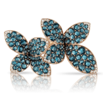 En oro rosa con diamantes blancos y champán, la colección cuenta con anillos, aretes, esposas y collares.