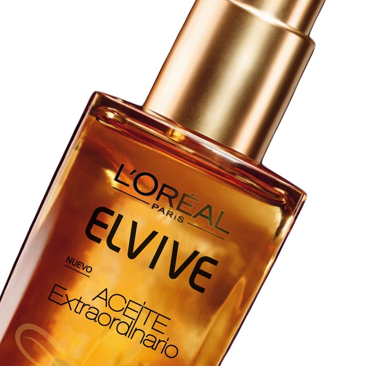 Con su estilo y su larga melena morena representa a Elvive Aceite Extraordinario.