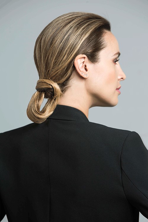 Con un giro al moño de bailarina y a la coleta baja, esta propuesta es ideal ya que, el baile de formas está asegurado con un cabello que se mueve con sutileza por estructuras sencillas y fáciles de llevar. Bajo el denominador común menos es más, los recogidos rinden culto a la naturaleza de los grandes clásicos: el moño bajo y la coleta.
