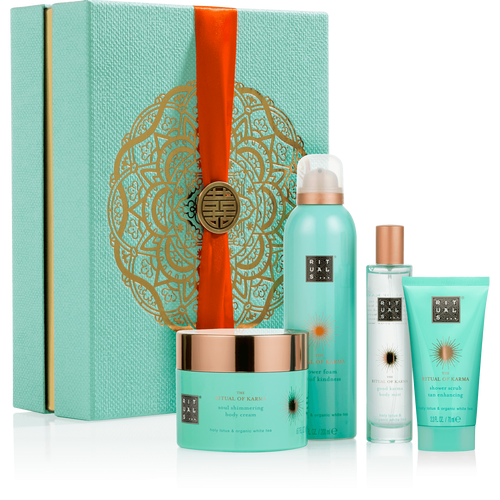 The Ritual of Karma. De acuerdo con una creencia hindú, vivir con buena intención genera buen karma. Regala palabras amables, piensa en positivo, y haz buenos actos para mantener este círculo de positividad porque al final, siembras lo que cosechas. La colección de The Ritual of Karma te ayuda a sumergirte en el la energía positiva del verano durante todo el año gracias a su aroma diseñado para mejorar tu estado de ánimo. Cuida de ti mismo, practica el arte de vivir con calma y presta atención a los pequeños detalles de la vida. Al final, toda esta positividad te será devuelta en forma de felicidad. Se feliz en cuerpo, mente y alma.