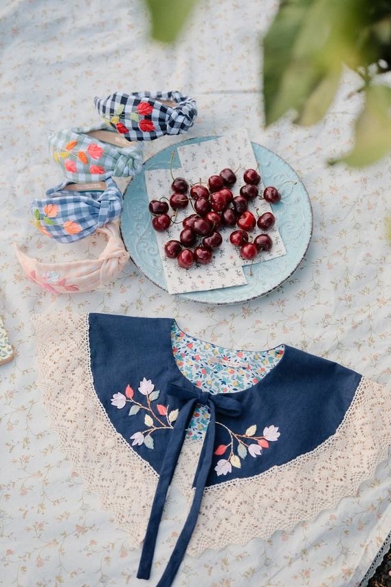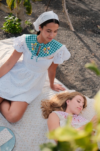 Su nueva colección de verano, Vichy/25, es un homenaje al encanto de lo cotidiano y a la belleza de lo sencillo. Incluye cuellos bordados y diademas realizados en algodón 100% y lino, decorados con puntillas rescatadas de mercerías antiguas de los años 50.