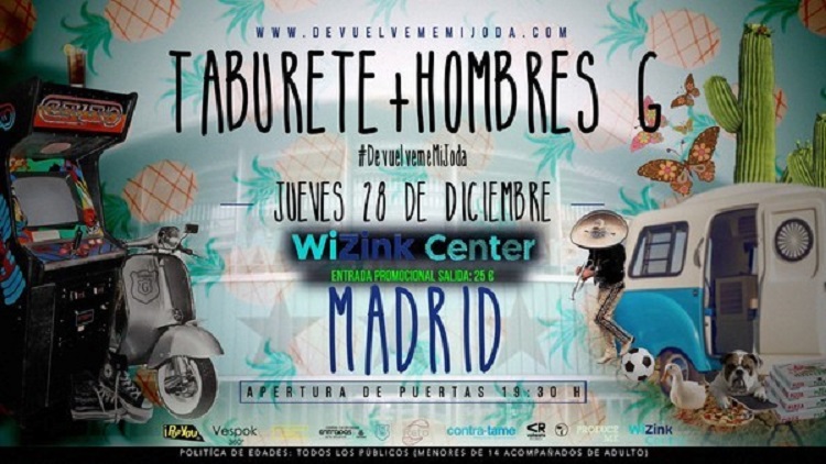 Oct 08 2017 Noticias TABURETE Y HOMBRES G Vendidas 10.000 entradas para su concierto en el WiZink Center de Madrid. La gira #DevuelvememiJoda de Taburete y Hombres G, pasará... Leer más Mar Barbero Noticias 0 Comentarios