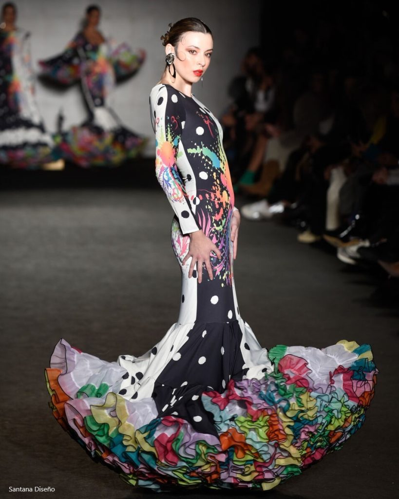 Y no podemos olvidarnos de los espectaculares modelos de Santana Diseño que son una auténtica maravilla. Con formas ajustadas, colores brillantes e infinidad de pequeños volantes que convierten, cada uno de sus diseños, en una auténtica obra de arte.