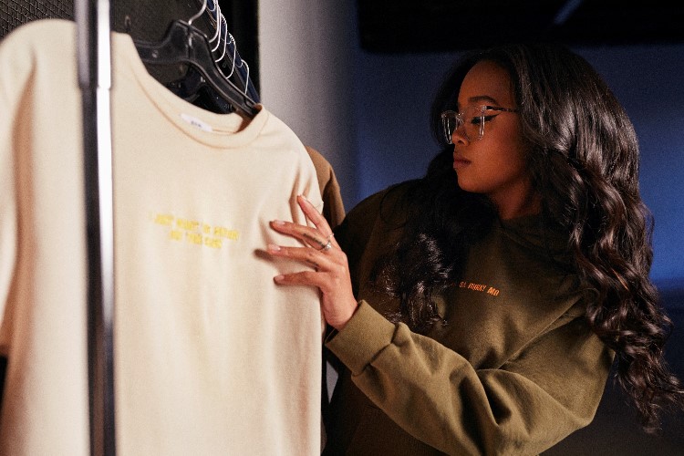 “Hay dos lugares que realmente me hicieron ser quien soy. Estos lugares han contribuido indudablemente en mi crecimiento como artista y como mujer: por supuesto, mi ciudad natal, Vallejo, California, y también el tiempo que pasé en Brooklyn, Nueva York. Era muy importante para mí plasmar esas dos ciudades en la colección. Hay otras prendas que son una oda a la zona de la bahía. Por ejemplo, el jersey con la frase «Yadda Mean» forma parte del movimiento Hyphy y es algo que representa a todo el mundo de este sitio».