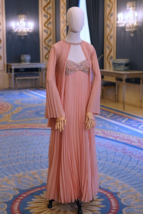 Cuatro de las creaciones que vistió en el coliseo madrileño se podrán ver en la exposición: un diseño de Elio Berhanyer, en 1976; dos de Loris Azzaro, que lució en 1986 y 1997, y otro de Pierre Cardin, en 2013.