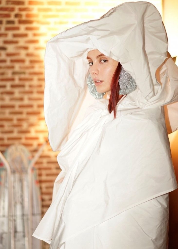 “Esta colección representa el ruido de esas mujeres obligadas al silencio. Un ruido estrambótico, pero a la vez pacífico que representa a una mujer revolucionaria, que denuncia, y que defiende todo aquello en lo que cree. No al canon, no a las reglas, no a la norma, no al sistema. Como Leonor Fini, musa que inspira la colección, 005 muestra una libertad de color, de forma, de espacio, con la que pretendo reforzar una identidad sin límites. Es un mensaje contra la catalogación, la clasificación y la ordenación a la que nos conduce la sociedad de hoy».