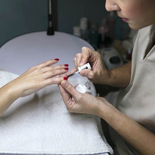 A continuación se realiza el esmaltado vegano con una laca de pigmentos de larga duración, formulados artesanalmente a base de pigmentos vegetales mezclados a mano.
