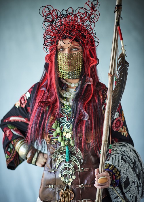 Karen, el nombre de la tribu en la que viven las mujeres jirafa en Tailandia, fue el punto de partida de la inspiración de una colección que ahonda en la simbología de este grupo étnico más allá de los famosos collares. El cuerpo es más que un adorno y se convierte en la interpretación de la condición femenina y social mediante los conocidos collares de cobre, así como collares de cuentas, diademas de flores y otros trabajos sobre el cabello llenos de color. Las mujeres crean sobre sí mismas un ajuar estético para explicar quiénes son y cuál es su rol. En palabras de Rafael Bueno:“ Sus llamativos collares, los turbantes de colores y las flores en el cabello son su mayor signo de identificación. Cada imagen representa una parte destacada de sus vidas.”